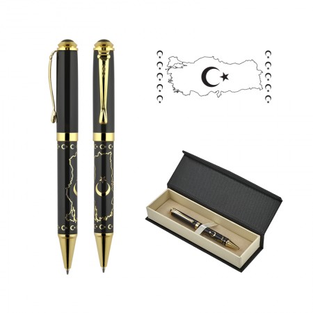 685-KT Türkiye Kabartma Figürlü Metal Tükenmez Kalem Seti