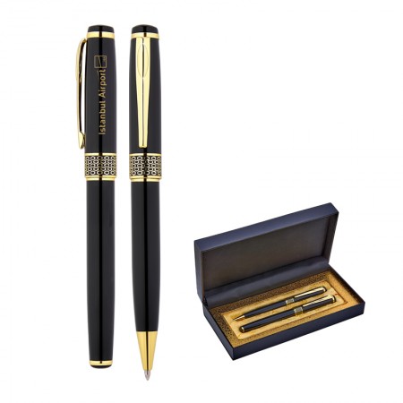 1213-RT Siyah Metal Roller & Tükenmez Kalem Seti